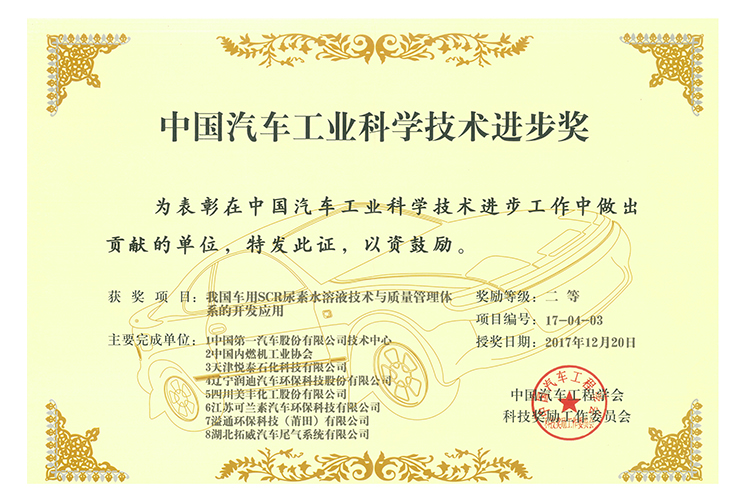 中国汽车工业科学技术进步奖