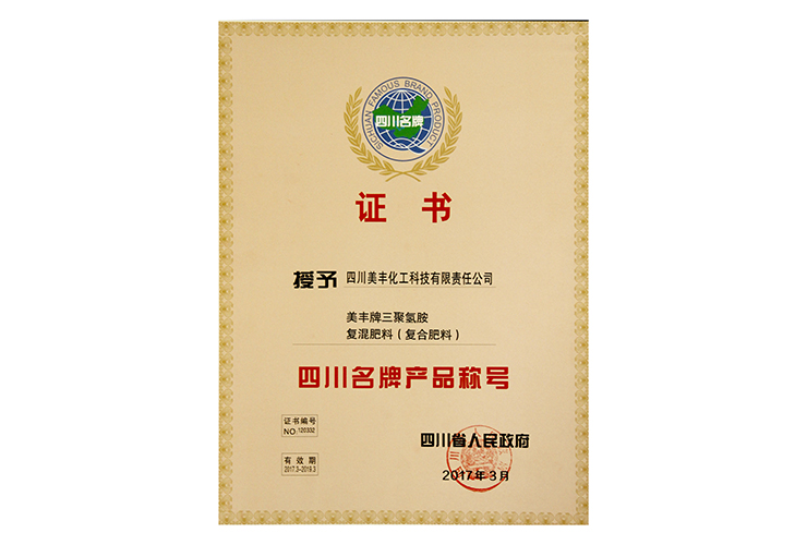 16877太阳集团牌三聚氰胺 复混肥料(复合肥料)四川名牌产品称号