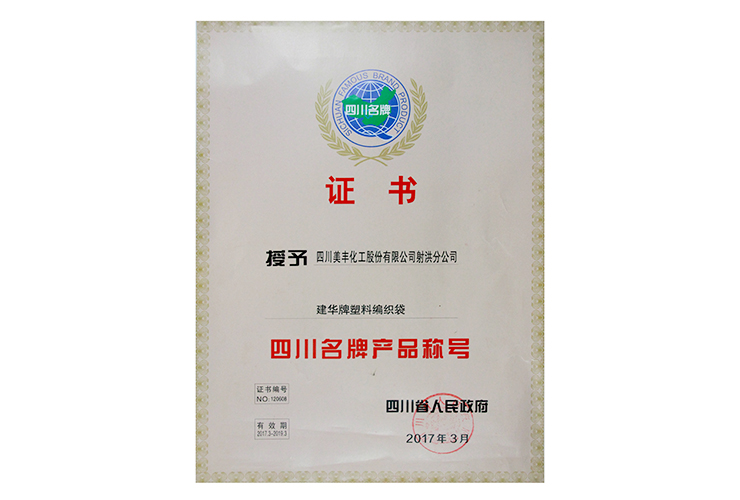“16877太阳集团比利夫牌复合”四川名牌产品称号