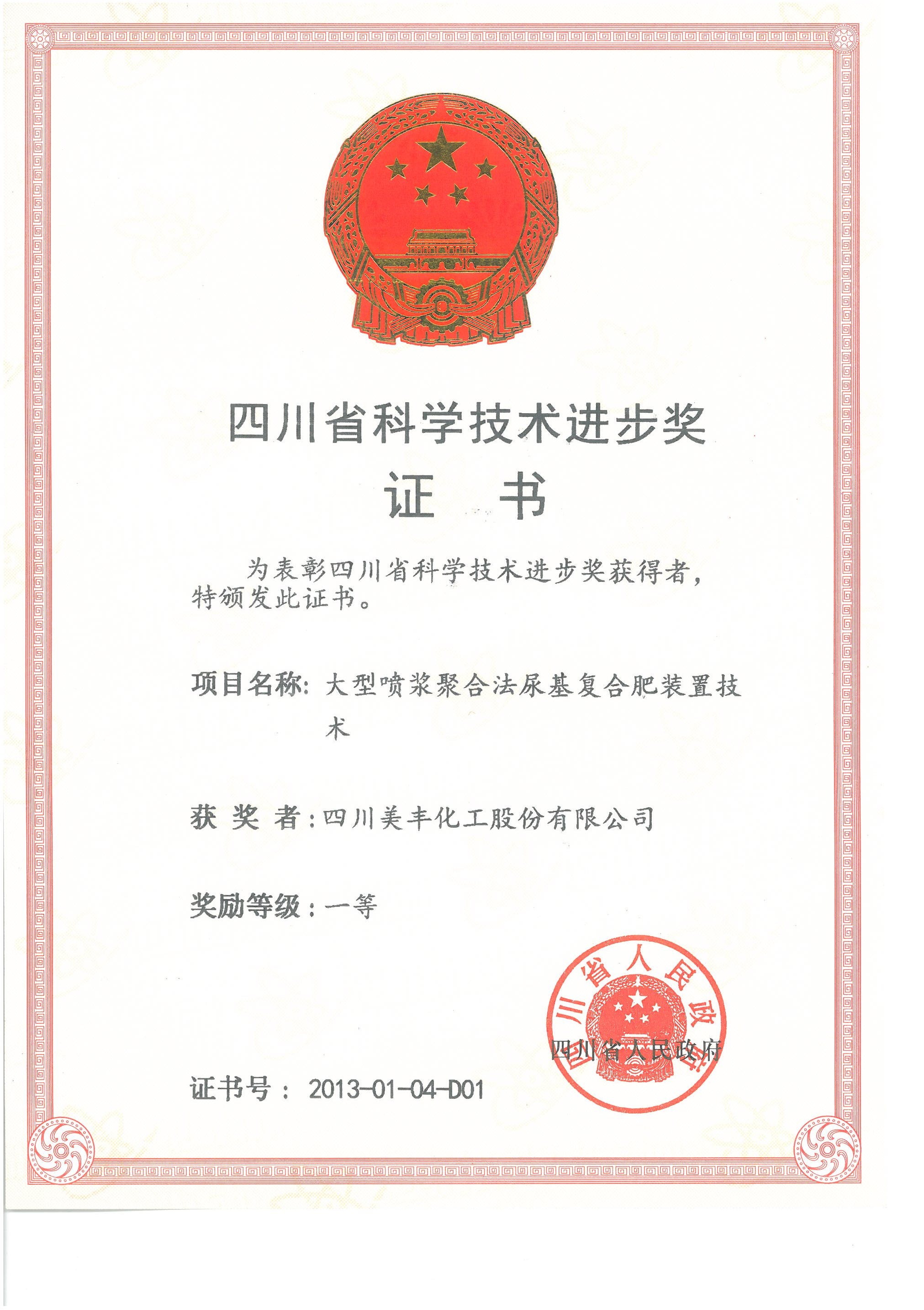 四川省科技进步一等奖